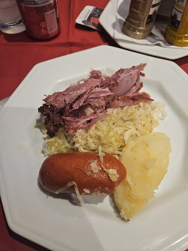 Read moreA princípio quando se chega ao restaurante, a entrada aparenta apenas ser um boteco, mas ao fundo tem um salão onde são servidas as refeições. O lugar é bem simples, nao espere algo sofisticado, percebe-se o desleixo das louças lascadas, e os copos levemente engordurados Pedimos água para beber e a mesma não estava gelada, também nao nos ofereceram gelo. . . Comida relativamente caro pelo o que é servido. (125,00) Pedimos um Eisbein a pururuca (Eisbein a Franz), que é servido com chucrute, batatas e um salsichão que de longe se assemelha as salsichas alemãs parece mais aquelas da Sadia rs. ) o joelho, de pururuca nao tinha nada, a pele estava quase a ponto de derreter. A comida é mediana....