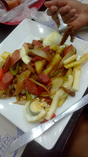 Minha sugestão é o lomo montado. Um lomo saltado com mais ingredientes, como salsicha, ovo e banana. Meio que correspondente ao nosso virado paulista.