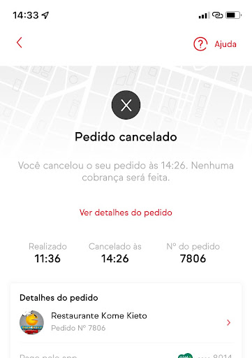 PIOR LUGAR DA VIDA! é a primeira vez que estou reclamando sobre um ambiente através da internet, solicitei um pedido no ifood 11:36 para almoçar na empresa, o entregador saiu as 12:14, e é 1.1km de distância. DEMOROU, DEMOROU, a pessoa que respondia, atendimento horrivel demais! Falando que já estava chegando, que iria ligar para o motoboy e não respondia mais. Achei um absurdo a falta de empatia, se eu tivesse hora pra almoçar estava lascada! Esperei até agora 14:26, sem comer, esperando 3 horas o meu pedido!!! me senti humilhada! horrivel! Não comprem! nunca passei por isso. E colocando mais uma observação, como segue as imagens, quando comecei a reclamar muito 14:25, eles cancelaram o meu pedido!!! E está mostrando que eu fiz o cancelamento, sendo que não cliquei em nada. Esperar 3 horas pra almoçar no trabalho e ainda cancelarem o pedido! Pessoas assim nem deveriam trabalhar com o publico! descaso e 0...