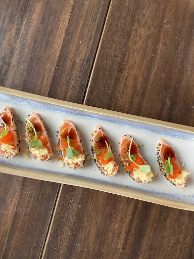 Read moreFui em um dia de semana comum e o restaurante estava bem tranquilo. Meu pedido foi um temaki de salmão que achei muito pequeno (penso que por ser a la carte deveria ser maior que os temakis de rodizio), uma unidade de um niguiri de barriga de salmão e outra unidade de um dyo de salmão com ovas. Pelo valor cobrado imaginei que a qualidade seria altíssima, mas a espessura do salmão do niguiri era bem fina e quase não senti o sabor da barriga de salmão. O dyo era okey..nada especial. O arroz estava mais vinagrado do que deveria. Paguei 80 reais por essas 3 peças e uma água com gás. Pagaria esse valor feliz se as peças entregues correspondessem ao valor cobrado. Fiquei bem decepcionada com o restaurante e se você tiver outras opções, siga para outras. Caso contrário,...