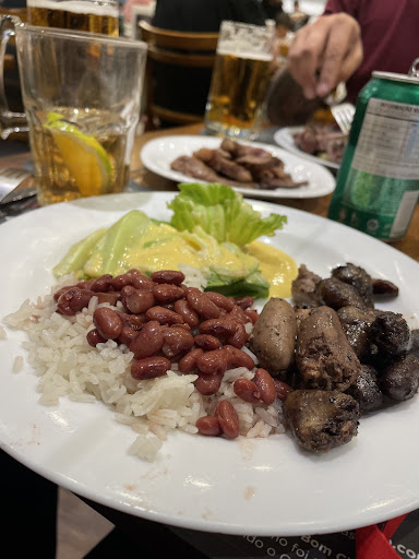 Porém, o item principal, a carne, decepcionou. A suposta “picanha” claramente não é picanha: vem cheia de nervos, com gordura que não derrete na boca, e é cortada tão fina que perde completamente o ponto. É bem parecido com o corte “coxão duro”. Depois de experimentar essa “picanha”, nem tive vontade de provar o ancho, que também é oferecido como opção. *Talvez eu tenha tido azar de escolher o pedaço da carne. Mas a linguiça é uma ótima opção, estando dentro da categoria “churrasco”.