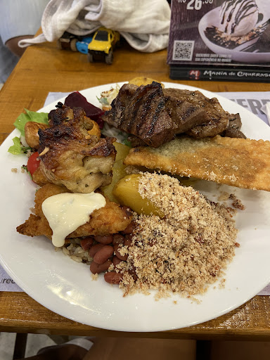 Read morePrecisei comer 3 vezes no local para chegar a conclusão do porquê eu não acho o ambiente tão bom, quanto aparenta. Gosto da organização de tudo... da disposição das mesas e da possibilidade de ter um local distinto da praça de alimentação do shopping. Isso inclusive é um dos pontos altos do restaurante. Infelizmente um detalhe que tira um pouco da qualidade do local é o próprio churrasco. Me chamem de louco, mas um lugar que tem no nome "Mania de Churrasco" deveria no mínimo prezar pela qualidade das carnes e em como elas são servidas. A qualidade não é de todo ruim, mas deixa a desejar no tempero e no ponto. Inclusive a falta de tempero se estende ao buffet em geral. O feijão nunca tem aquele gostinho de "novo". Sempre parece algo requentado. Dito isso, e apesar do preço um pouco acima do que é oferecido em relação a qualidade da comida, entre os restaurantes que existem na praça de alimentação, esse é um dos melhores ambientes para um...
