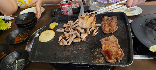 Chegaram as entradinhas, que não eram fartas, mas eram gostosas. Depois vieram as carnes. O atendente nos perguntou se conheciamos o churrasco coreano, dissemos que não e começou a colocar as carnes pra grelhar pra gente. E explicou que depois de prontas deveriam deveriamos passar elas num molho que as temperaria, porque sem esse molho elas ficavam apenas com gosto de carne. Ok. Ele nos explicou como montava a "trouxinha" com o alface, a carne, o molho é o arroz. Mas em nenhum momento tinha álcool em gel na mesa ou vimos sinalização pro banheiro. Limpamos nossas mãos com nosso álcool em gel e fizemos as trouxinhas para comer o churrasco.