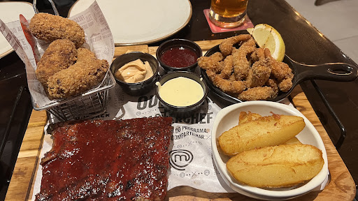 Read moreNo sábado 30/03 foi e minha esposa por volta das 20h e havia uma fila de espera com 19 pessoas na minha frente e eu questionei a atendente quanto tempo demoraria para entrar (devido a fila) a pessoa da recepção me disse que a posição 19° já estava esperando a mais de 1 hora. Logo eu e minha esposa deduzimos que n daria tempo de entrar e comer, logo fomos procurar outro lugar, maassss devido insistência dela, voltamos e entramos na fila... advinha? 20 minutos depois estávamos sentados na mesa. Seria um milagre? N sei. Pedi a promoção que vem 2 pratos com acompanhamento e demorou muiito pra vir o prato, o refri chegou e tudo. Até nossa waiter se desculpou e foi cobrar a cozinha... Ai a batata estava crua e o mac and chese frio... A jr ribs estava muito boa, como a gente estava com fome eu comi junto da minha epsosa metade das coisas e depois questionei a waiter se a qualidade era aquela do outback, ela chamou o gerente q viu que o negócio n tava bom e ele sugeriu mandar prato novo, na qual eu n aceitei, ai ele sugeriu sobremesa, na qual eu questionei minha esposa que disse q ja estava cheia, então falei que poderia ser aquele sorvete que dão quando cantam parabéns. Assim foi dado pra nós 1 sobremesa de parabéns e fomos embora... Não foi um dia agradável nesse lugar, mas minha esposa continua sendo fã dessa franquia e até hj n sei pq kkkkkkkk então provavelmente ainda vou mais ai....