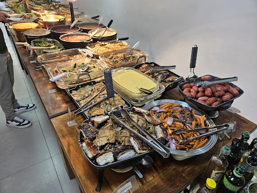 Eu como quantidade média, meu prato saiu uns 29 reais, do meu namorado saiu uns 38 reais. Pra pegar a comida tem que colocar a luva descartável e manter a máscara enquanto pega. Tem a parte de churrasco, uma delícia (só achei a fraldinha meio salgada, mas o frango estava mto delicioso).