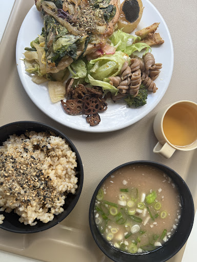 Read moreNão conheço os princípios da alimentação macrobiótica; apenas sei que é basicamente composta por vegetais. Com isso em mente, fui conhecer o Satori. Havia apenas a opção do prato do dia, conforme a foto. Os vegetais com seus gostos de verdade, sem molhos para disfarçar. Um arroz integral misturado com legumes e verduras. Uma sopa à base de missô (pasta de soja) com cará, cebolinha, cheio de sabor. Chá à vontade. Peguei a opção "pequeno" e achei que seria pouco quando vi as quantidades, mas foi mais que suficiente para me sentir satisfeito.