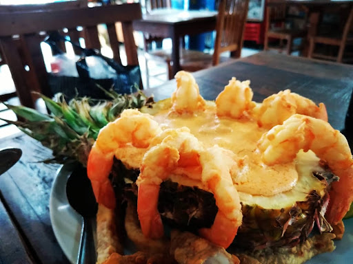 Read morefui conhecer o restaurante no meu aniversário. antes tinha perguntado por mensagem se havia alguma condição especial e disseram que drink de boas vindas e sobremesa. quando perguntei pessoalmente só confirmaram a sobremesa, então seria bom corrigir a falha de comunicação. pedi um camarão havaiano que vem com estrogonofe de camarão no abacaxi, camarões grandes empanados, tiras de tilápia fritas, arroz e fritas. estava bastante gostoso, serve duas pessoas tranquilamente, porém pelo preço (R$130,00) o molho não deveria ser talhado, é possível usar creme de leite fresco ou até mesmo creme culinário que é barato e pode aquecer sem deixar esse resultado. o atendimento foi muito cortês e a sobremesa que escolhi foi um petit gateau que estava gostoso e bem servido também. veio com uma farinha láctea salpicada que não entendi, mas ok. saldo da visita muito bom no geral, o tamanho dos camarões é satisfatório e o cardápio é bem grande, além de você nem notar a espera olhando todas as decorações que...
