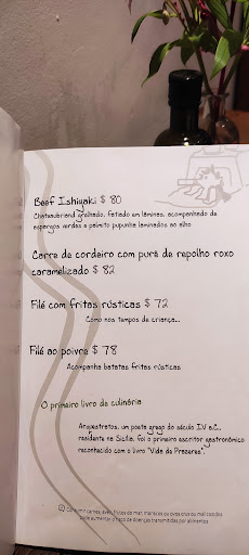 Da cozinha de comida contemporânea brasileira, saem as mais diversas opções de pratos saborosos. De entrada, o folhado de compota de cebola caramelizada com ementhal é delicioso. Ainda tem opções famosas como o pastel de angu e a polenta mole com cogumelos. De principal, o famoso camarão ao leite de coco, servido dentro do coco e acompanhado de arroz branco, é sensacional. Destaque também para o risoto de camarão com mascarpone e amêndoas e a moqueca vegetariana. Para encerrar a refeição em alta, a panqueca de doce de leite e a surpresa de brigadeiro são...