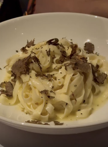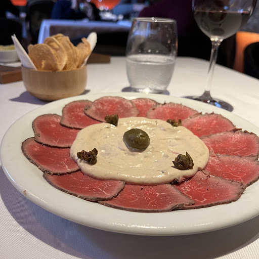 Por lá, de entradas sugiro o clássico vitelo tonnato (R$69,00). É um clássico do Piemonte, que eu gosto muito, e que consiste em fatias finas de vitela servidas frias e cobertas por um molho cremoso feito à base de atum, maionese, alcaparras e anchovas. A textura macia da vitela contrasta com a cremosidade do molho, que traz uma combinação única de sabores salgados e um leve toque de acidez.
