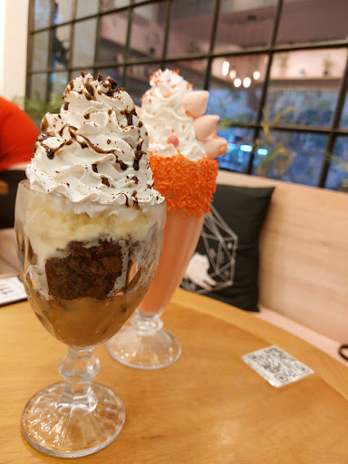 O ambiente é bonito, mas o serviço deixou a desejar... visitamos o local no dia 10 de Agosto, quando chegamos (por volta das 17:00) os funcionários estavam comendo, e entraram correndo como se estivéssemos interrompendo, não estava cheio, sentamos e nos deram o cardápio. Pedimos a Taça de Brownie (que esta escrito "para compartilhar" então esperávamos que fosse maior ate mesmo pelo valor R$34,90) e o Frappe Mary Jane que sempre aparece nos posts do Instagram, o atendente foi atencioso ao informar sobre o gatil mas não retirou os cardápios que atrapalharam quando chegou o pedido...
