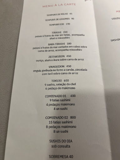 O menu degustação, por pessoa, saiu por mais de 350 reais (380 se não me engano), gastamos mais 300 de saquê. Acabamos por gastar mais de 1000 reais em duas pessoas, em uma comida que não gostaria de comer nem de graça. Cozinha cheia de mimimi, pecando na qualidade.
