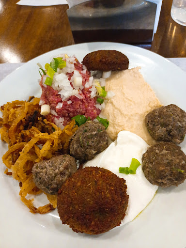 Read moreFui ao restaurante porque vi uma indicação do Mohamad Indi em um vídeo do youtube, onde ele dizia ser uma comida muito tradicional e saborosa (fui porque normalmente as indicações dele são ótimas). De fato a comida é saborosa, mas quando eu e minha família chegamos fomos informados que o buffet a vontade custava 80,00 reais (final de semana). Muito embora a comida seja saborosa, não acho que o que é oferecido é compatível com o valor. Primeiro porque afirmaram que seria a vontade e que eles serviam kibe assado e frito na mesa. Contudo, para a nossa surpresa, quando o garçom foi servir os kibes na mesa, falou: "aceita o kibe frito, cortesia da casa um por pessoa?" ... Ora, mas não era à vontade? Desculpe, mas um restaurante árabe, que cobra 80 reais o buffet livre, que não é livre e regula o kibe??? O mesmo se repetiu quando fomos comer a sobremesa. Primeiro que no buffet a sobremesa que era a vontade era pudim de leite, frutas e doce de semolina. Os doces árabes, aqueles com massa folhada também é um por pessoa. Mas sinceramente, nem era bom. Estava com gosto rançoso de tão gorduroso, uma pena, porque pra mim a parte mais gostosa seria isso! Além disso tem poucas opções pra quem é vegetariano. Pagar 80 reais pra comer basicamente 4 coisas: tabule, falafel, salada e pão (com babaganush babaganush, homus e coalhada), acho caro. Enfim, não vale a pena pelo preço que é cobrado, e achei um absurdo regular o kibe, além de não informar antes que esse é o sistema. Uma pena, fui para conhecer, porque minha mãe ama essa culinária, mas com certeza já fui em outros muitooo melhores e mais justos. Não me importo nem um pouco de pagar caro, desde que coma bem, e seja justo, mas nesse caso, não...