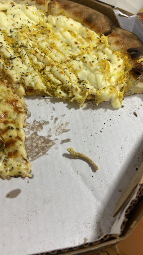 Read moreÉramos clientes dessa pizzaria a anos , pedimos hoje e a pizza venho com um osso de frango, a pizza que pedimos era de frango com catupiry e fomos reclamar e simplesmente a atendente chamada GABRIELA disse que osso era do frango, achei bem cara de pau essa resposta, não pediu desculpas e nem ofereceu outra pizza. Tenho um filho de 2 anos e graças a Deus vimos antes de comer, poderia até se engasgar com o pedaço mencionado na foto. Péssimo atendimento, péssima qualidade perderam...