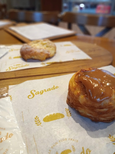 Read moreEu não falo francês, quando li Boulangerie achei que era uma loja de bolo! Rs Brincadeiras à parte, adoramos conhecer o Sagrado. Como somos praticamente vizinhos, já visitamos o lugar pelo menos umas 4 vezes e em todas elas fomos recebidos com muita simpatia por todos! Falando agora do que interessa, o pão francês deles é uma delícia (se vc pegar saindo do forno então, vai comer 5) e o famoso pão na chapa com café sai por um preço justíssimo. Mas, para quem quer tentar algo novo recomendo fortemente que experimentem o croissant na chapa que é muitoooo bom. E se estiver com vontade de um doce, eles também tem várias opções ( inclusive bolo, rs) e nós já experimentamos a banoffe (gigante e delicioso) e os danishes ( super levinhos)de canela e chocolate. Podem ir sem medo em...