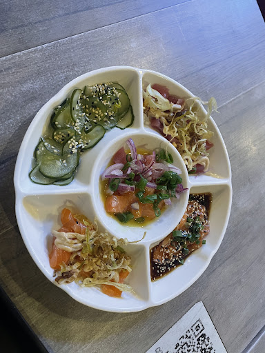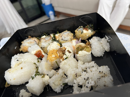 Quanto à comida, acho difícil avaliar restaurantes japoneses com a mesma lente sempre, pois o preço varia muito, e as propostas também. Então vamos começar dizendo que é um restaurante extremamente custo-benefício, com as três opções tradicionais de peixe e uma entrada muito surpreendente, sendo o ceviche bem temperado, com bastante cebola roxa - que eu pessoalmente gosto -, o carpaccio de salmão saboroso e sem inventar moda. E para minha surpresa, um corte de salmão e atum com alho poró e maionese trufada - que eu considero uma ofensa à culinária asiática - que estavam realmente saborosos.