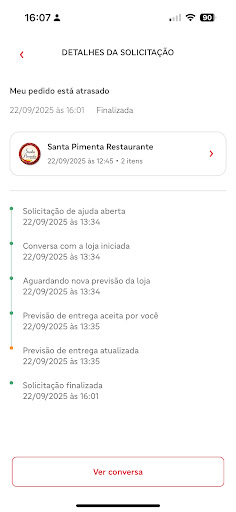 Fiz um pedido ontem (22/09) pela ifood nesse restaurante as 12:45. O prazo de entrega informado entre 13:15 e 13:25. Eram 13:20 o status do pedido ainda estava como preparando e nenhuma comunicação comigo foi feita. Questionei via chat e me deram um novo prazo de +10min. Aceitei e aguardei. O prazo não foi cumprido e tão pouco houve comunicação comigo sobre o atraso recorrente. Findo esse prazo solicitei o cancelamento do pedido. A loja não aceitou, mas novamente não me comunicaram nada. Tipo, estamos com problemas, peço desculpas, mas vamos entregar. Nada! Segui com o cancelamento. Estava com fome! Sai para comprar outra comida. Quando estou na rua, as 14:15 a portaria do meu prédio avisa que tem um motoboy lá - vejam TUDO ISSO SEM NINGUÉM ME AVISAR PELA PLATAFORMA. Mandei que não recebessem. Era +1 hora de atraso na entrega e 2h de atraso do pedido! O pagamento foi feito antecipado, via cartão de crédito e tanto a LOJA QUANTO O IFOOD SE RECUSAM A DEVOLVER MEU DINHEIRO.