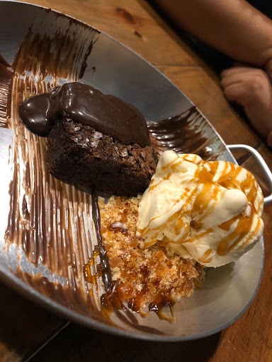 Agora vem a parte que a barriga gosta. Pedimos como entrada a Hail Mary. São 8 unidades de Sticks de mozzarella da casa, acompanhada de um porção de maionese verde e uma porção de maionese de bacon. Estavam sensacionais! Aproveitamos também uma promoção que a casa disponibilizou este dia que era assim: Você pedia qualquer burger do cardápio e ganhava um smashburger, sendo eles o Big Fried e o Double Block. Vale ressaltar que esses burgers originalmente vem com duas carnes, mas nessa promoção cada burger vinha com apenas uma. Sendo assim, pedimos o Hunger Strike, bem passado – Burger de 180g, queijo Monte Rey Jack, bacon bits, alface, tomate, cebola roxa no pão brioche. Que burger maravilhoso. Também pedimos o Smells, ao ponto- Burger de 180g, cheddar e bacon redondo artesanal no pão brioche. Mas que Burger divino! E os smashburgers: Big Fried - Um smash de 60g com cebola (originalmente são dois smashburgers de 60g), cheddar, molho especial no pão brioche. E um Double Block – Um smash de 60g (originalmente são dois smashburgers de 60g), cheddar, cebola em rodela cortada bem fininha, picles de pepino, ketchup, mostarda no pão brioche. Lembra um Royale With Cheese caseiro (Quarteirão). Eles estavam impecáveis e muito agradáveis ao paladar. Vale ressaltar que você pode acrescentar um combo com batata e refrigerante, que foi o que fizemos, pois valia muito a pena. De sobremesa, pedimos o Spoonman – Brownie da casa, calda de brigadeiro meio amargo, farofa de caramelo com nozes, acompanhado com uma bola de sorvete de creme. E mais uma vez, palmas para a Carla, pois ela foi a responsável de fazer essa deliciosa sobremesa que estava sensacional!