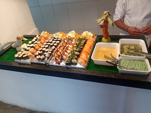 Você pode pegar o buffet com saladas, guarnições e alguns acompanhamentos, e em seguida pegar churrasco e/ou comida japonesa!