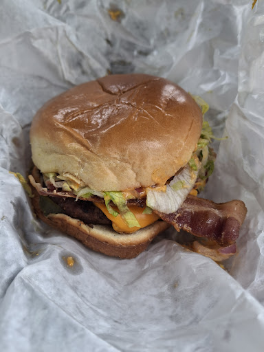Pâo macio, burger suculento, queijo derretido, bacon crocante, picles, alface, tomate, cebola tudo frescos. O lanche estava muito saboroso, em harmonia com todos os ingredientes. Volto para experimentar o Blue...