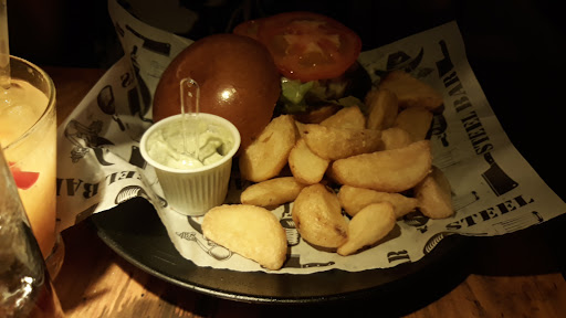 Já havia ido neste bar há alguns anos atrás....mas sempre fora do horário de pico. Depois de muito tempo retornei com a minha namorada, pois ela havia visto no Face e ficou com vontade de conhecer. Havíamos tentado semana passada, mas jo horário da banda é impossivel entrar e ocupar uma mesa. Ontem chegamos depois 22 hrs, a banda já havia terminado e com isso deu para pegar uma mesa. Mas confesso que com a banda tocando seria melhor. Para comer e beber pegamos um X-Salada com fritas e um Sanduba de Costela, que já acompanha fritas e maionese da casa. Os lanches estavam bem saborosos e nos satisfez muito bem. Para beber pegamos uma caipirinha Road King de sakê. Estava com sabor muito bom da Tangerina, mas não sentimos o sabor do gengibre. A pimenta dedo de moça era apenas uma decoração. Só achei que não precisava colocar uma tangerina inteira com casca e tudo, pois além da casca ocupar quase que metade do copo fica muito resquicio de bagaço. Mas estava bem saborosa e quase não parecia ser uma bebida alcóolica, assim que é bom. O legal do drink é perceber os sabores dos ingredientes presentes. Valor total deu uns R$105,00 para duas pessoas. R$25 do X-Salada + R$7 das batatas para acompanhar, R$29 do Sanduba de pernil, R$25(acho eu) do Road King de Sakê, R$7 de uma coca cola e mais o serviço. O bar é bem legal e bem tematizado....nos dias de tempo bom sem chuva o público aparece nas duas motos estilo Road da Harley-Davidson e outras motos possantes do mesmo estilo. Mas também tem o público "normal" vestido sem roupas de motoqueiro e sem...