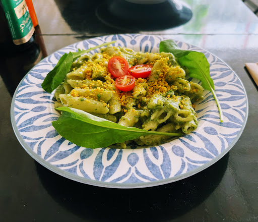 It’s a cute outdoor café with covered seating, so it stays nice and cool even in hot weather. It was a bit hard to find at first because there’s only a small sign outside Praça das Artes, but the café is actually located inside the building. I’d recommend anyone looking to dine here to look for Praça das Artes — the café is right by the entrance! I ordered the pesto penne with house-made mushroom sauce and a lemonade. They had both Portuguese and English menus, as well as waiters who spoke fluent English. The food was absolutely decadent, and you could tell the sauce was made in-house. They also served oil and a spicy pepper sauce on the side. I absolutely loved the combination of the earthy pesto and the spicy sauce. There was a label on the sauce indicating it was made fresh that day, and you could really taste the freshness of the peppers. The lemonade was refreshing and not overly sweet. The cozy atmosphere, house-made ingredients, and delicious food make this charming café an...