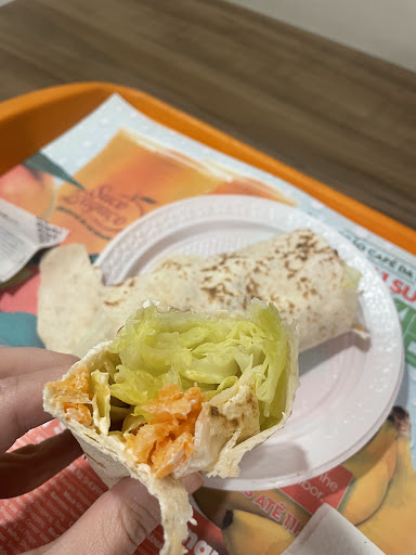 Read moreFui com meu filho e meu esposo pedimos três wrap veganos e tres sucos, demorou muito para chegar os lanches, a cenoura do meu lanche e do meu esposo estava ralada, do lanche do meu filho a cenoura estava picada grosseiramente, tão grosseiro que não dava para consumir, haviam três rodelas grossas e uma encontravasse com casca, deixamos o lanche de lado, na bandeja havia gradanapos de papel e um deles (quase o ultimo) havia sangue. Ficamos muito preocupados, com medo daquele sangue também estar no lanche que consumimos. Levei até a bancada, conversamos com um funcionario acredito que seja gerente, mostramos tudo a ele no momento, tiramos fotos também. Não quisemos o dinheiro de volta pois isso não iria resolver nosso transtono. Não sabemos se o lanche que chegamos a consumir tambem havia sangue e isso ainda nos causa um certo medo. Nunca mais voltaremos ao local e também não...