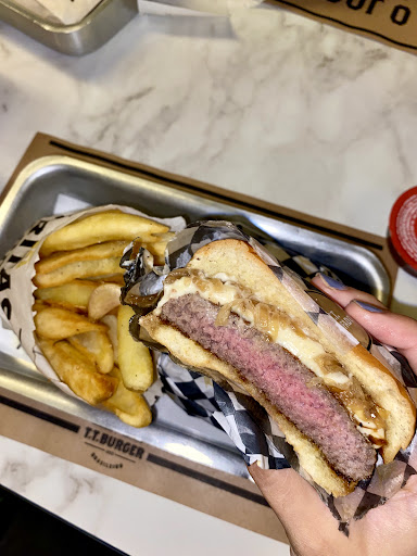 Fui na noite de sexta-feira(03/01/25) com um amigo, que é assinante do Duo Gourmet, para conhecer a hamburgueria e aproveitar o benefício. A decoração do lugar é bem simples e minimalista. Logo que você chega já dá de cara com 3 tótens para fazer pedido....isso eu não curti, dá muita cara de uma lanchonete fast-food famosa. Para ter o benefício do Duo Gourmet tínhamos que escolher um hambúrguer e os acompanhamentos, pagar e solicitar o outro hambúrguer ao atendente. Bom...eu escolhi um T. T. Burger, que é um hambúrguer com 180g de blend de Angus, alface, tomate, queijo meia cura derretido, picles de cebola roxa e o molho deles. Além do hambúrguer, pedi também uma porção fritas grande. Feito o meu pedido no tótem, meu amigo pediu também um T.T. Burger. Pegamos uma mesa e em pouco tempo nossos pedidos chegaram a nossa mesa. A porção de batata grande até que é generosa, serviu bem duas pessoas. Ela não vem em um cesto, vem num saquinho mesmo, como nas redes de fast-food. Apesar de estarem crocantes e sequinhas, tinham cara de ser industrializadas. Não aparentam serem feitas por eles. O hambúrguer visualmente achei bonito, porém quando mordi não achei nada de sensacional. Se intitulam o "Melhor Hambúrguer", mas eu ainda tenho outros na preferência. Hoje o meu padrão de referência é o Holy Burger. Apesar de não ser sensacional, o hambúrguer estava gostoso, bem preparado. Porém erraram no ponto da minha carne. Eu pedi um mal-passado e veio ao ponto. Depois que eu terminei, meu amigo ele largou o final do hambúrguer dele e vi que o dele era o que era para ser o meu. Na hora de servir os lanches, inverteram as bandejas. Uma coisa que eu gostei, foi do molho ketchup de goiabada que o atendente nos trouxe gentilmente como cortesia junto com os sachês de ketchup. No geral dou um ok, apesar de o hambúrguer estar gostoso, as fritas também serem boas, não me conquistou muito. Matei a minha vontade de conhecer o lugar. Diria que me senti num Mcdonald's mais refinado e com mais qualidade, mas dizer que é o melhor hambúrguer, acho que é forçar a barra.