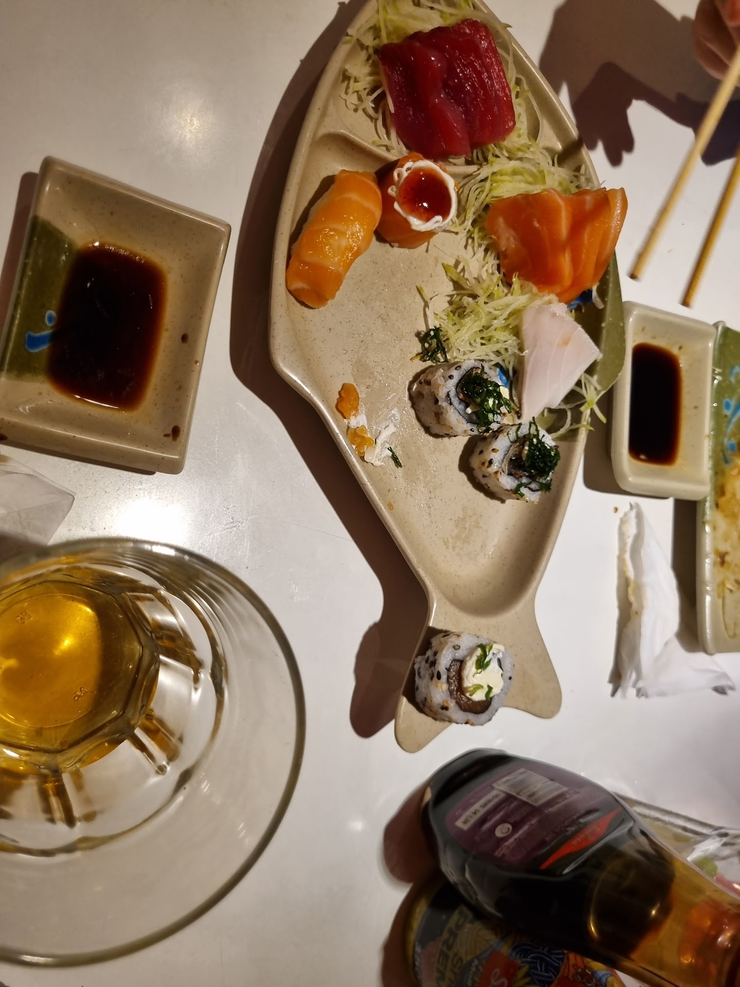 Há um restaurante japonês na esquina de casa, porém como a noite estava muito gostosa hoje, após fortes chuvas, decidi caminhar umas 3 quadras pra conhecer o Tegami Sushi. O ambiente de cara foi bem aconchegante, bem ao meu gosto; pequeno, relaxante e silencioso, tanto que me senti muito descansado e relaxado após um longo dia. Os garçons foram bem simpáticos e atenciosos. Começando pelo destaque: A qualidade do peixe servido. Super fresco e de qualidade, o atum bem rosado e a tilápia branca uma delícia. As pratos vieram no tempo correto e estava tudo bem apresentado. Apenas 2 detalhes a apontar que podem facilmente melhorar: 1º O Shimeji poderia ser melhor, mais gostoso e com melhor textura. 2º Apesar da qualidade do peixe ser excepecional, a variedade de sushis é bem limitada; senti falta de sushis e jows originais, criações próprias da casa que me fizessem querer voltar lá por ter aquele sushi ou aquele jow especial. Mas nada disso atrapalhou na minha degustação. O yakissoba não é o melhor que já experimentei, mas é bem servido, gostoso e feito na hora, boa pedida pra...
