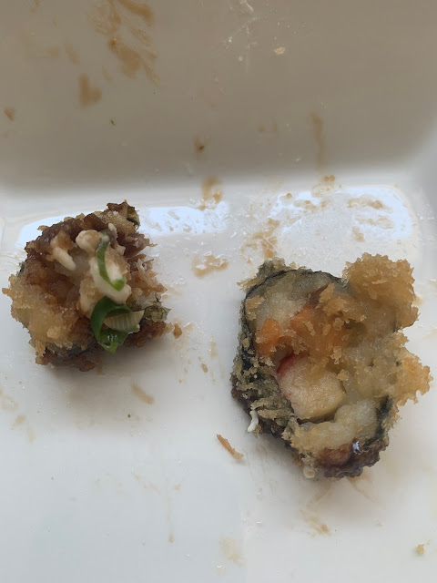 Resolvi esperar e foi a pior decisão que tomei na vida, demorou 25 minutos para TIRAR o meu pedido (sendo que era para viagem). Após 95 reais gastos, chego em casa e os temakis ok, mas o hot-roll estava péssimo. Eles usam o “salmão” para rechear, com aquela parte acinzentada e amarga do salmao, que fica entre a carne e a pele, sabe? Nojento, estava com um cheiro forte já. Uma pena que não tirei foto, mas joguei a porção inteira no lixo, estava incomível.
