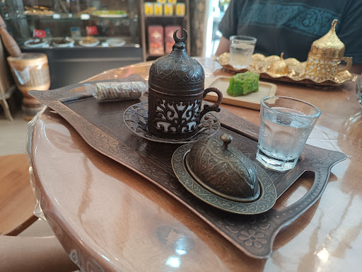 Read moreAo entrar na lodjinha parece que somos teletransportados para o Oriente Próximo; espaço pequeno, apertadinho, mas muito encantador. Os doces turcos todos muito bonitos, de bom tamanho, uma tentação. Mas entrei para conhecer o café turco, feito na cafeteira ibrik, linda peça. Não só o método mas também o café é de origem turca. O pó de café é finíssimo e a imersão o deixa, digamos, "cozido", já que não passa por filtragem. Este "resíduo" fica no fundo da xícara e parece um creme de chocolate, que poderia acabar sendo comido por alguém meio distraído. A versão com cardamono é exótica e divina ($16 em out'25). Para quem não aprecia café, há também os chás de origem turca. Era por volta de 13h e estava movimentado, mas mesmo assim o atendimento foi atencioso com explicações sobre as opções disponíveis (tradicional, cardamono e tubérculo de orquídea), café levado à...