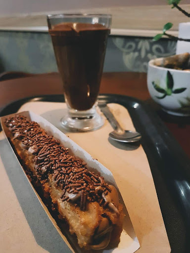 Read moreLocal muito agradável, o atendimento é excelente. O menu explora opções variadas mas muito saborosas. Os preços são justos. A coxinha de jaca é deliciosa e o churros com o chocolate de avelã é muiiiito bom! Experimentei também o churros com doce sem leite, mas a textura do doce sem leite não me agradou muito, mas vale a pena experimentar. Tomei também o chocolate gelado, achei a textura e temperatura muito boa, mas o gosto em si do chocolate (achei que faltou um pouco de sabor de chocolate mesmo) não agradou o MEU paladar. Fiquei com vontade de experimentar a bebida de café, mas vai ficar pra...