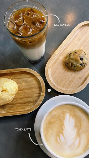 A minha foi a Tonka Latte (R$15,50) uma das autorais quentes da casa, feita com café, leite vaporizado e essência de cumaru, considerada a baunilha amazônica. E ela era perfeita! Naturalmente doce e muito saborosa. Para acompanhar, escolhi um Pão de Queijo (R$7,50) que era gostoso.