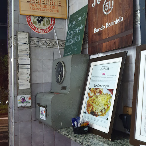 Read moreBar típico, simples com uma proposta interessante. Ao chegar no local tive dificuldade de estacionar, por fim deixei na rua, antes de chegar no Bar. Lá sentamos em mesas e cadeiras de madeira q abrem e fecham, tipicas de bar. Era um sábado 19h aproximadamente e estava chovendo. Fomos atendidos prontamente, escolhemos a meia Beri a parmegiana, meia Beri a bolonhesa, escondidinho de Berinjela, Beriburguer, pastel de carne, kibe de berinjela e bebibas de saque c frutas vermelhas e morango. O preço é acessível, a comida demorou uns 30 minutos p chegar. O local tem decoração com faixas de time, avaliações da imprensa e outros dos maos de 50 anoa de casa, linha do tempo de sua história, uma tv e som ambiente com musica de pagode. Saimos de lá as 20h satisfeitos, os pratos e bebibas estavam muito bons. O mais interessante e gostoso foi o kiberinjela e o escondidinho de berinjela (inesperado como o fizeram)....