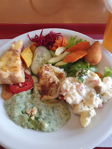 A comida não é ruim, tem umas opções boas e de qualidade (mas não muita opção). A parte de saladas é boa, mas da comida em si já não vejo tanta opção. O suflê de cenoura e o creme de espinafre principalmente, bem saboroso. O suco natural também é gostoso.