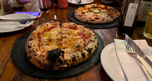 4 - Pizza tinha mais borda do que recheio, tudo bem que é o estilo, mas vimos exagero. O garçom defendeu dizendo que era estilo Napolitana. O que mais deixou insatisfeito foi a pizza ter vindo com áreas queimadas e um pedaço totalmente carbonizado, estragou o gosto da Pizza;