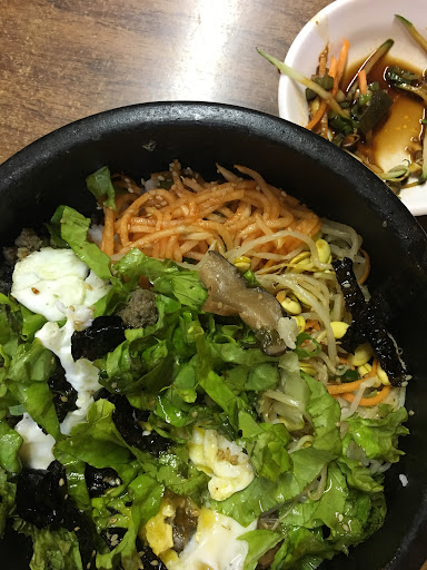 Read moreLocal simples mas muito acolhedor e ambiente bem familiar. Comida deliciosa, se houver necessidade há explicação do prato em português mesmo os nomes dos pratos estarem escritos em português e coreano. A comida chega com certa rapidez, o atendimento é muito bom, cortez e gentil. Como existem pratos que são preparados nas mesas, sobre chapas ou panelas específicas, muitas vezes as mesas próximas ficam com a fumaça do preparo. Isso é super comum nos restaurantes coreanos. Só senti falta de um chá quentinho. (Quando fui o tempo estava frio). Dica: Bibin bab e Bulgogui (foto dos pratos que pedimos) servem 2 a 3 pessoas. Se for com uma turma maior de pessoas, existe um local reservado, com mesas baixas (estilo oriental) onde você tira os sapatos para se acomodar. Local que super recomendado e com certeza...