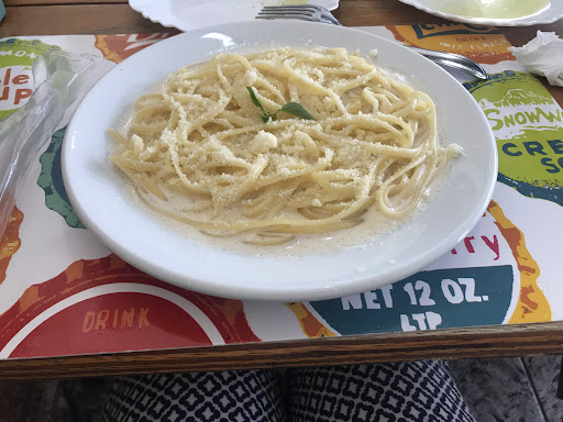 Read moreComida bem saborosa e diversos pratos da culinária italiana. Entretanto, os pratos são um pouco caros. Um prato de macarrão simples (fettuccine com molho 4 queijos) foi R$37 e não é taaao bem servido. Importante dizer que a maioria das massas não é feita por eles (algo que justificaria o valor) mas é um macarrão de caixinha « normal ». Se for, vale a pena pedir uma massa que é preparada pela casa, como as lasanhas, nhoque etc, pergunte antes. De qualquer forma os pratos são gostosos. Também tem pfs. Lugar pequeno e simples mas gostoso. A entradinha que é um pão italiano com azeite é muito boa. Eu gostei bastante, só achei o preço um pouco acima do valor que eu esperava e que as massas poderiam ser feitas...