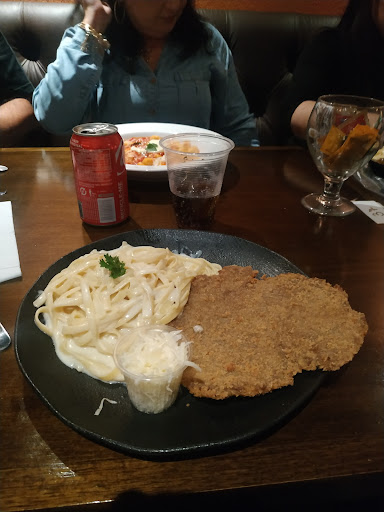 Eu pedi um filé de chorizo com risoto de 4 queijos e meus outros colegas pediram a parmegiana de filé mignon.