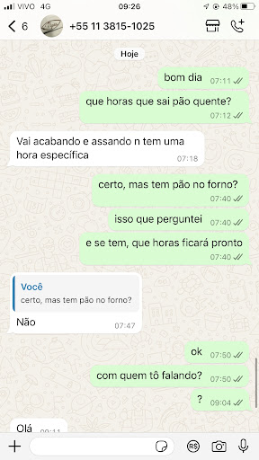 Mas minha experiência foi péssima por conta do dono, não dos funcionários, esses são uns amores. Mesmo sua mãe, também dona da padaria, tinha um sorriso muito convidativo e uma simpatia que só quem ja viveu muito, consegue manter durante o dia todo.