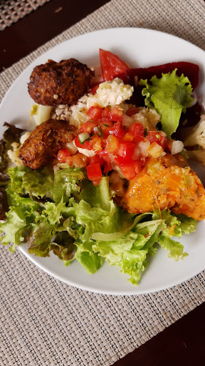 Read moreFully vegan buffet just off the busy main road. Pay once and you can refill all much as your line including drinks and desserts. Plenty of classic Brazilian classics including rice and beans, fried cassava, and pastels. Very tasty strawberry cake bit slightly watery drink options. Space is a bit limited ) there is an up stairs space but you have to go downstairs for the food). Staff are happy to answer any questions and general atmosphere is positive and not too...