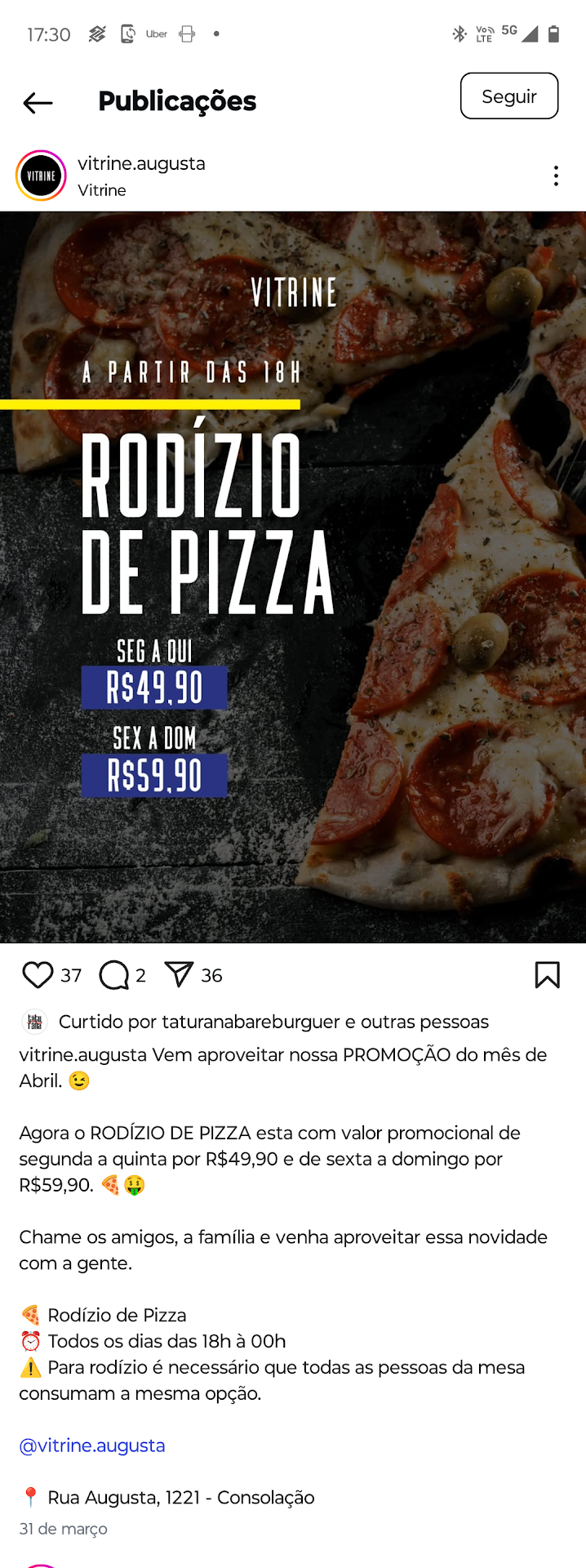 NUNCA MAIS pisaremos nesse lugar. Quando eu disse que faria uma avaliação no Google, tentou me fazer mudar de ideia dizendo "escreva no instagram para o pessoal ver, no Google nos prejudicará".
