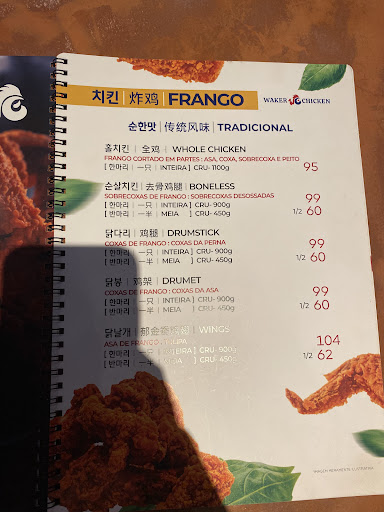 Fomos em 3 pessoas. Pedimos a sobrecoxa desossada de 900 gramas por 100 reais. O frango nao vem com acompanhamento nem molhos. Pedimos a batata temperada 400 g por 29 reais e um molho picante doce por 8 reais. O frango era bom. Bem estilo coreano mesmo. Bem parecido com os que comi na coreia. Massa de fritura nao é tao pesada, crocante, seca por fora e suculento por dentro. A batata temperada estava boa, mas murchou bem rapido. O molho base de gochujang com mel esta bom tb. O maior problema do waker é o preco mesmo. No final deu 60 reais para cada um. Preco ok para restaurante em sp. Só que em comparacao com o pollo loko por exemplo. No pollo logo o frango vem 1,5 kg , mais 1 kg de batata rustica e 4 molhos por 70 reais tudo. E dá para 4 pessoas. Eu particularmente ainda gosto mais do frango do pollo loko do que do waker. A diferenca é gigante. No pollo loko é 70 reais com frango , batata e molhos inclusos. O frango frito é tradicionalmente na coreia um fast food rapido e barato. No waker fica o mesmo preco de comer em restaurantes com pratos coreanos...