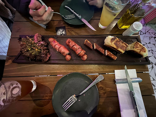 O único elemento que estava agradável nesse prato era o bife ancho grelhado que estava saboroso e no ponto que acredito ser o correto. No entanto, todo o restante estava péssimo, principalmente na quantidade dos demais itens, é importante ressaltar que perguntamos ao garçom se o prato serviria para dois. A linguiça defumada veio em uma quantidade irrisória e apresentava um gosto ok, nada de muito diferente do que é encontrado em açougues de boa qualidade, porém vendido aqui com um preço acima do que valia. A mesma lógica se aplica ao queijo coalho, que estava, ainda, queimado. Por fim, o pão de alho estava péssimo, qualidade horrível parecendo aqueles que são vendidos em supermercados, o que não seria ruim se não fosse o preço cobrado. Portanto, pelo conjunto da ópera, acredito que seja um prato extremamente inflacionado pela qualidade que se dispõe.
