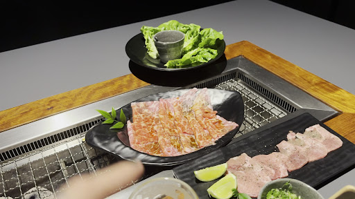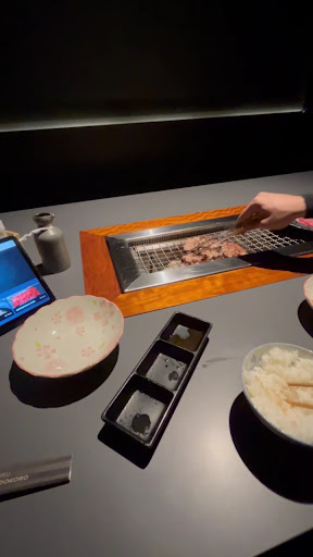 O serviço da moça que nos atendeu foi extremamente simpático e leve. O funcionamento é muito similar ao que acontece no Japão em relação a esse tipo de restaurante, mas aqui em SP achei ainda mais intimista porque ficamos nesses espaços fechados com um isolamento acústico. Você pede as carnes e elas vêm cruas e você deve colocá-las na grelha no centro da mesa e cozinhar até seu ponto desejado. Dá pra pedir acompanhamentos como gohan. A música ambiente estava ótima! Não achei o preço tão caro igual algumas pessoas falaram. Depende muito do quanto se pede. Eu comi bastante e paguei o equivalente a outros restaurantes bons (por volta...
