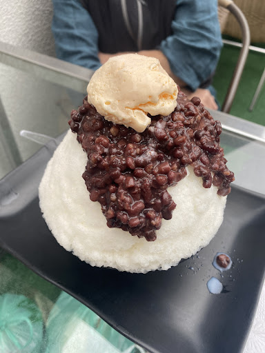 Read moreUm café escondido no bairro da Liberdade, com opções bem gostosas de chá com leite, poba, sagu, inhame, gelatina, café. Tem ambiente externo o que diferencia, embora no frio venta muito e fica insuportável. Preços justos. Adoramos a raiz de lótus (que por sinal é bem apimentada) e uma bolinha de peixe com curry, o que combinaria com cerveja então pareceu um pouco estranho com as bebidas que estávamos tomando, mas eram muito boas. Sugiro que peçam menos açúcar pois a opção normal é bem doce. Não levou 5 estrelas porque: 1) queríamos bebidas quentes, a moça que nos entregou o menu apontou quais eram as opções quentes, ao pedir no caixa, a moça não me perguntou se queria quente ou gelado, entendo que se há as duas opções, deveriam perguntar. E já que a outra tinha dito que eram opções quentes, pensei que viriam quente mas vieram todas geladas, mas não estavam ruins. Mas no geral o atendimento foi bom apesar da falha das duas. 2) O sorvete que vem no kakigori é bem fraco, mas no geral é bom, só acho que não vale 35,00 o de azuki. 3) e o pior: não há opção de leite vegano, vegetal ou sem lactose entao quem tem intolerancia a lactose ou é alergico que lute. Mesmo o leite de coco com café tem leite integral de vaca na composição. Não há como trocar ou pedir para retirar. No geral é um café gostoso, mas vá ciente dessas opções. Não possui muitas mesas internas e há como pedir menos açúcar...