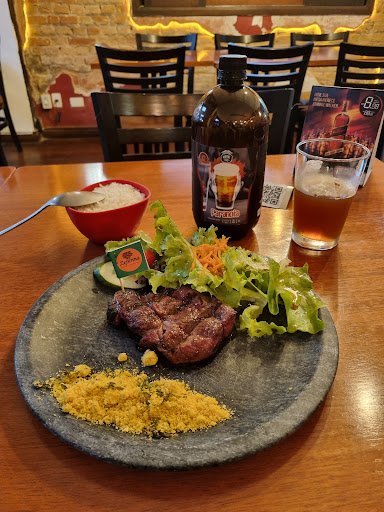 Read moreConhecemos o Zeferina há quase 1 ano e desde então, é um dos nossos restaurantes favoritos. O chuck steak (carro chefe da casa) é maravilhoso. Gostamos de pedir o duplo chuck + 2 toscanas, e de acompanhamento, variamos entre a batata canoa, a polenta e a mandioca frita. Todos muito bons. E se os preços já são super justos no cardápio normal, durante a semana no almoço, ficam ainda melhores com o menu executivo. Na última sexta, pedimos o executivo do chuck steak (foto) e valeu muuuito a pena. Excelente custo-benefício! Vale a pena provar as cervejas também. Tem vários tipos diferentes e sempre tem alguma novidade. Pra completar a experiência, o atendimento é simpático e educado (e não cobram taxa de serviço) e o ambiente é bastante espaçoso e agradável, com mesas na área interna e externa...