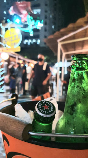 O ambiente já não é atraente para fotos, iluminação bem fraquinha, tanto que não tirei nenhuma fotografia "boa", é bem barulhento, mas óbvio que é por causa do local, como é uma rua bem movimentada acaba atrapalhando um pouco a experiência, mudaram as apresentações dos drinks, por exemplo da cerveja, se eu tirar uma foto da cerveja vai parecer que eu estou em um barzinho de esquina de um bairro qualquer, não em um bar renomado no centro na cidade, a caipirinha que eu considerava a melhor do Guarujá, já não me agrada mais , tanto na apresentação quanto no sabor, havia praticamente um limão inteiro no meu copo, mas ah quem gosta, é apenas minha humilde opinião.