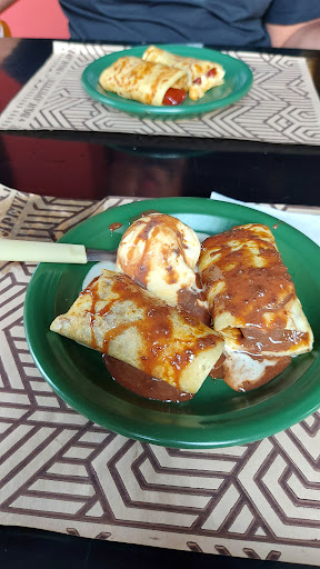 Read moreLugarzinho lindinho... Decoração caprichosa. Já o prato que dá o nome da casa.. mais ou menos... primeiro que podiam servir um paozinho ...A massa da panqueca estava na espessura da panqueca mesmo. Mas parecia aquecida e não feita na hora . E panqueca é um negócio que é pra ser feito na hora... Super rápido e fácil! O recheio (de carne) sem sabor. Pedimos ainda arroz. Sem sabor também. Pedimos o tal pãozinho. Nos cobraram 2 reais!!! E era só o pão mesmo...enfim...não e de todo ruim. Mas precisa, e pode, e deve melhorar. Ainda volto lá porque...