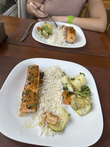 Read moreA comida é boa (um pouco cara pro preço alto que cobram), nada demais. Fui jantar com meu marido e meu bebê e já nos sentimos um problema pois fomos alocados na mesa do cantinho por estar com o carrinho de bebê. Percebi que outras pessoas "problema" também iam pro cantinho (um casal com roupa de moto e capacetes). O garçom não sabia o cardápio, então pedimos uma entrada de ceviche e uma salada para cada. A entrada veio, não serviram nossos pratos, então comemos dividindo a taça e um garfo. Foi quando o garçom trouxe um prato com pegador de macarrão (nada a ver com o que pedimos) e largou na nossa mesa que já estava apertada. Chegaram as saladas, um prato gigante de salada pra cada (o garçom podia ter avisado que eram pratos enormes e serviam duas pessoas cada, mas ok!). No final fomos embora com fome, mal atendidos e pagamos quase 400 reais. Não...