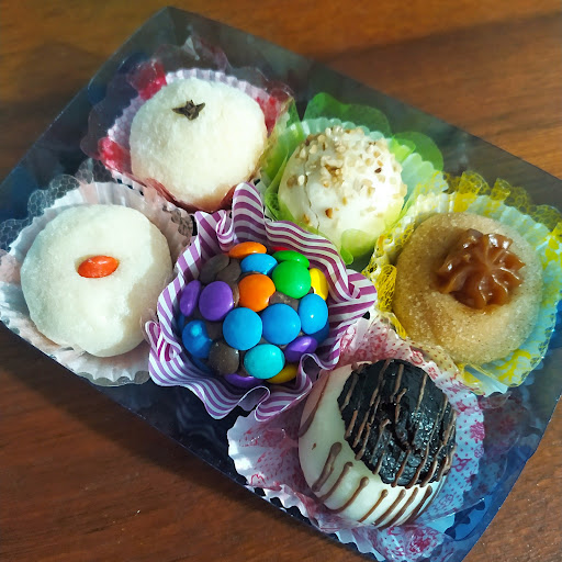 Read moreOs docinhos estavam bem bonitos por fora, mas por dentro estavam mais duros. O Brigadeiro não tem o gosto do tradicional, o beijinho também não, e os demais doces não pareciam tão bons quanto eu pensei que poderiam ser. A massa dos doces me pareceu estranha. Fiquei decepcionada porque os doces são bem bonitos mas não são saborosos. Também experimentei alguns dos salgados e a massa de mandioca do bolinho de carne seca não estava muito boa. A coxinha estava boa! Também comi em outro dia um pedaço de bolo feito com massa folheada e morango, abacaxi e pêssego. Outra decepção porque o creme não é o de baunilha mas o mesmo usado como chantilly, e vem poucos pedaços de frutas, além da massa folheada ser dura.